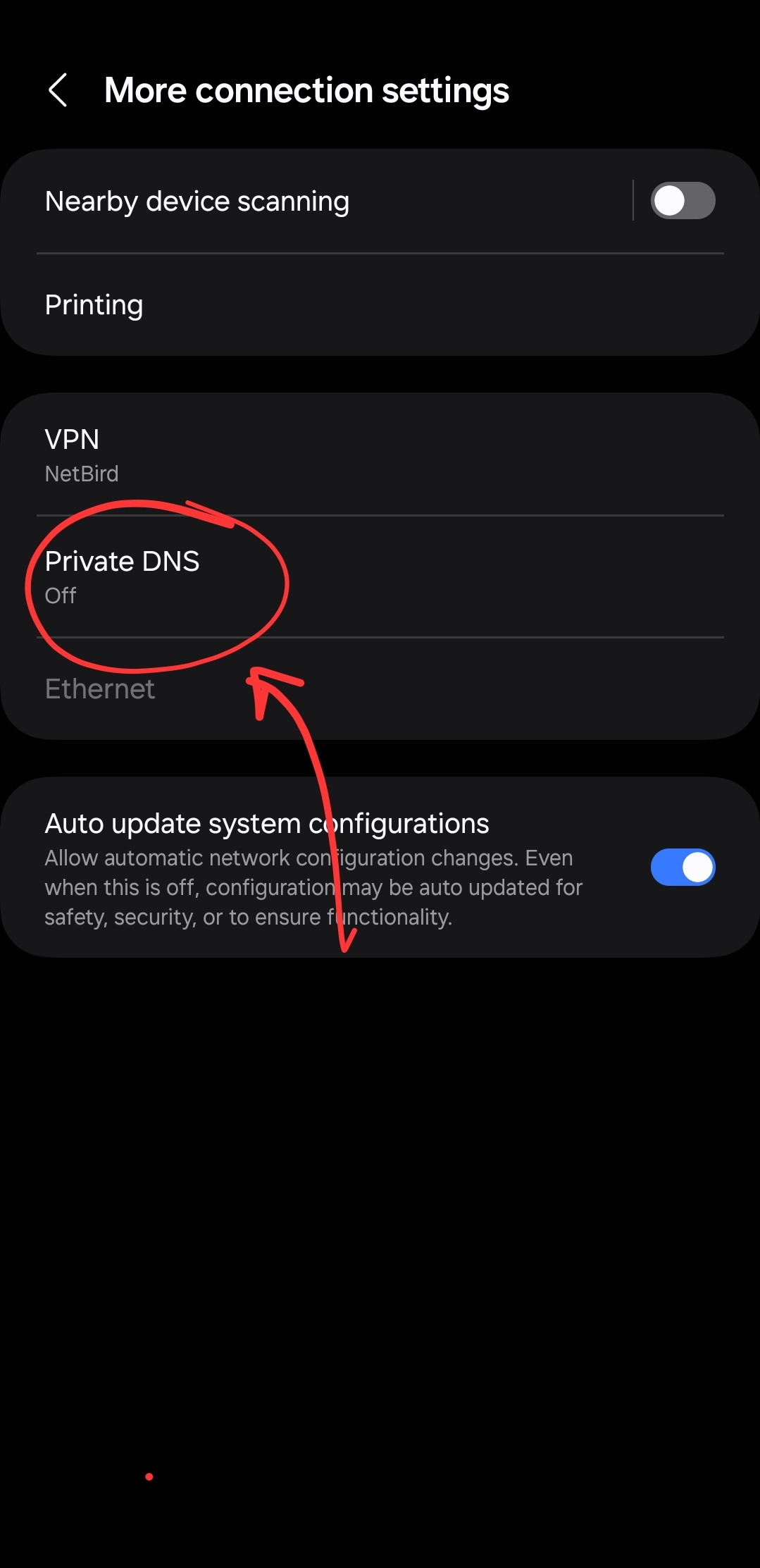If you are having problems with Netbird and DNS resolution, you can check this configuration section on your Android (e.g. OneUI from Samsung) Phone:
